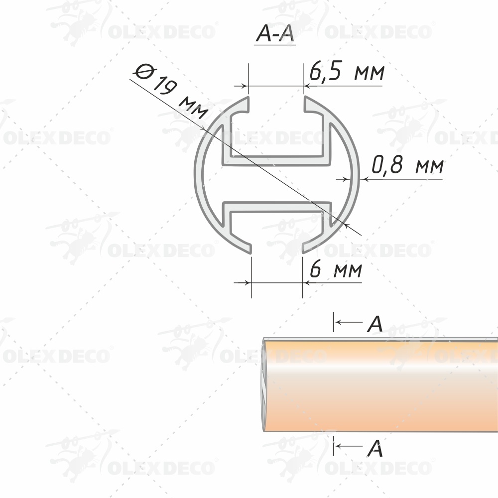 Труба гладкая, бело-золотой антик (16мм, 1,4м.)